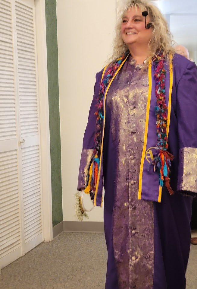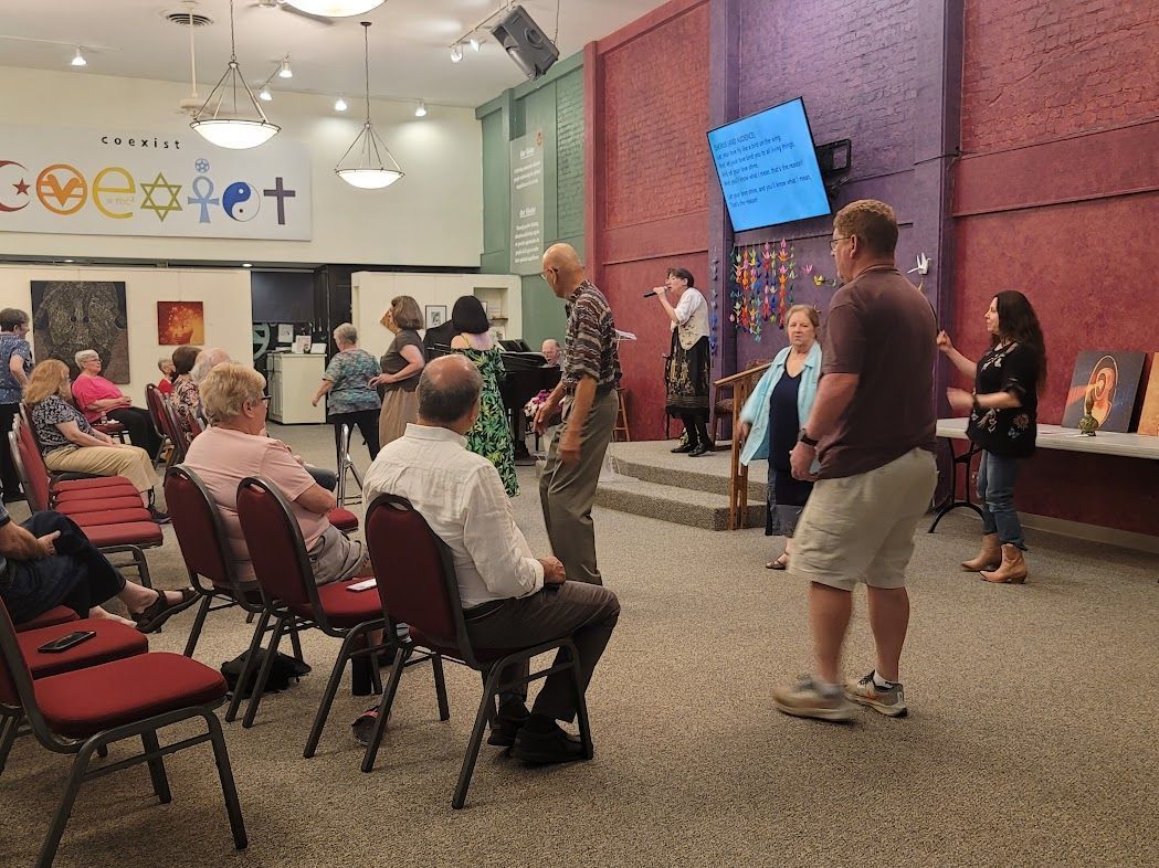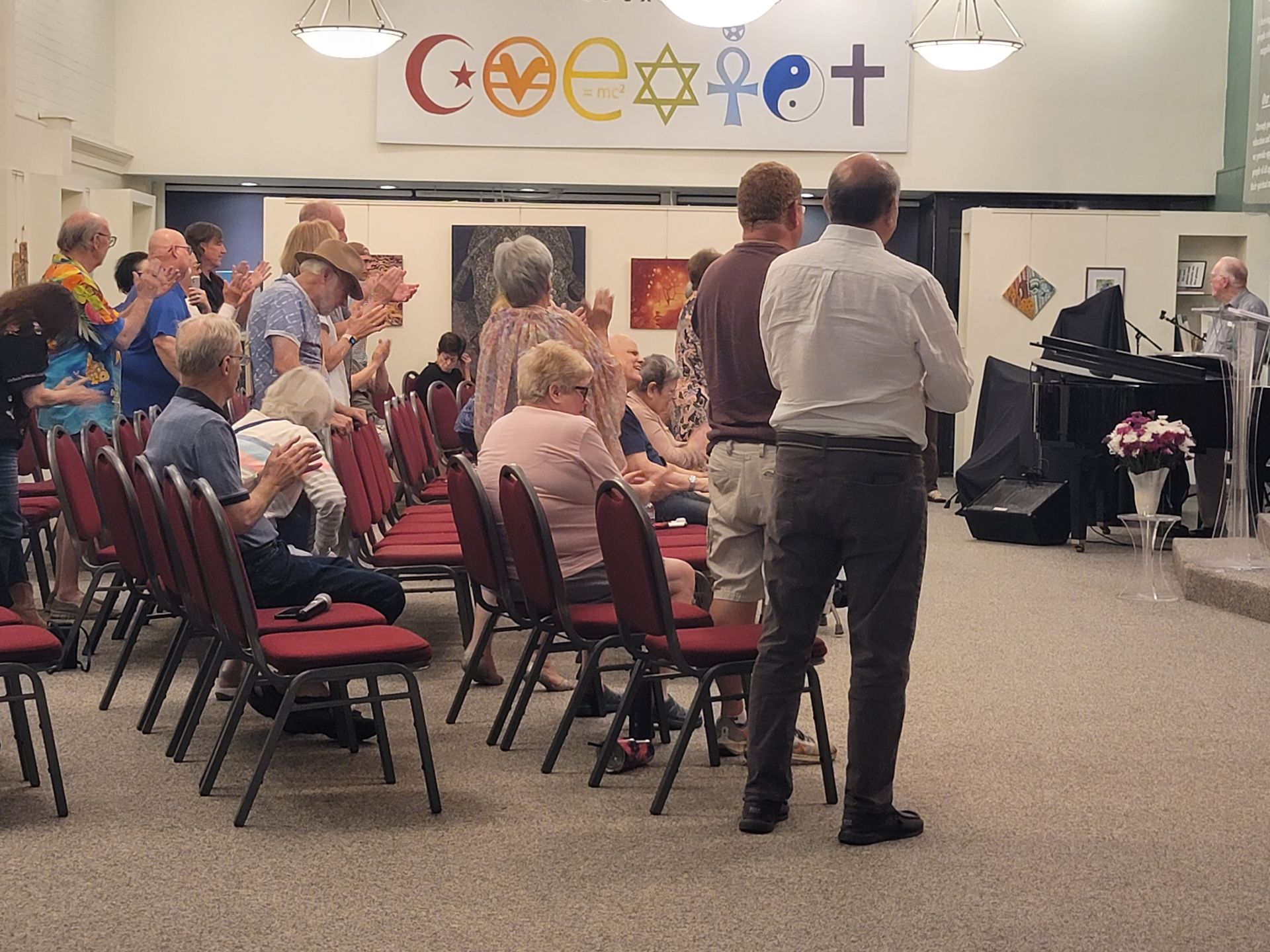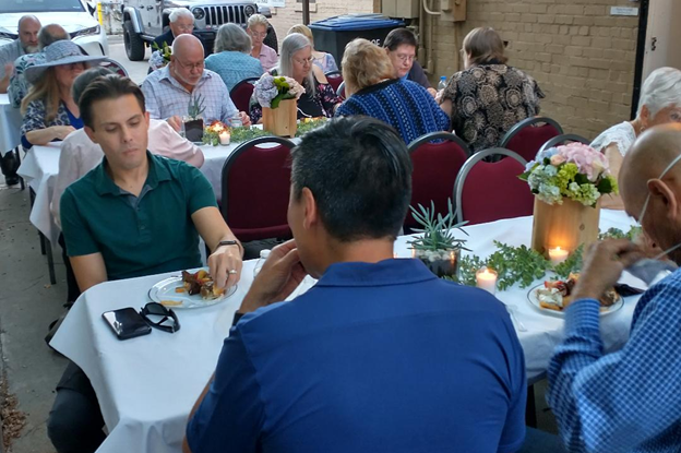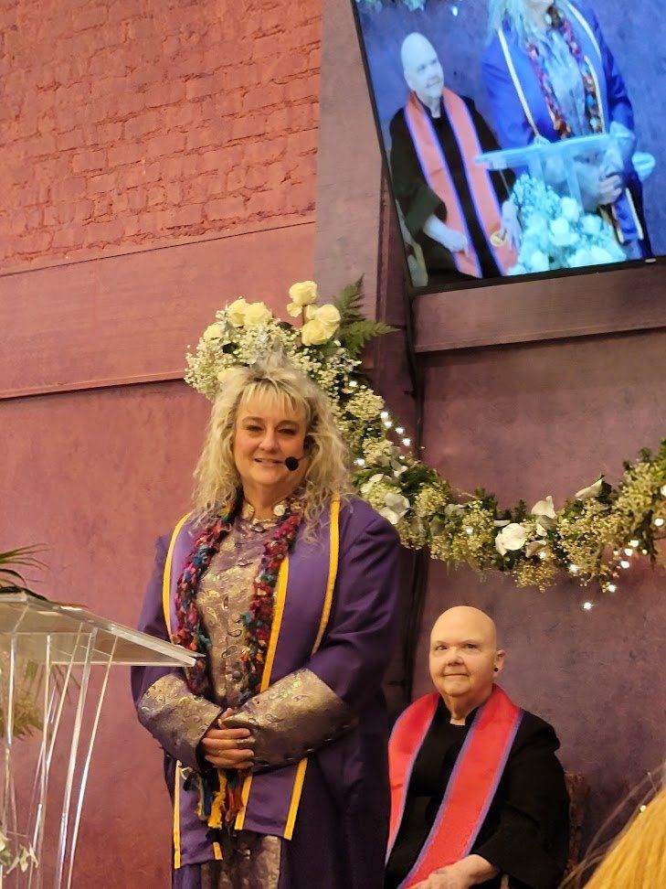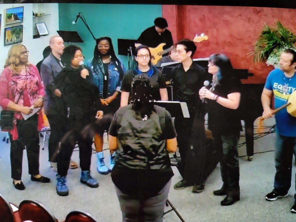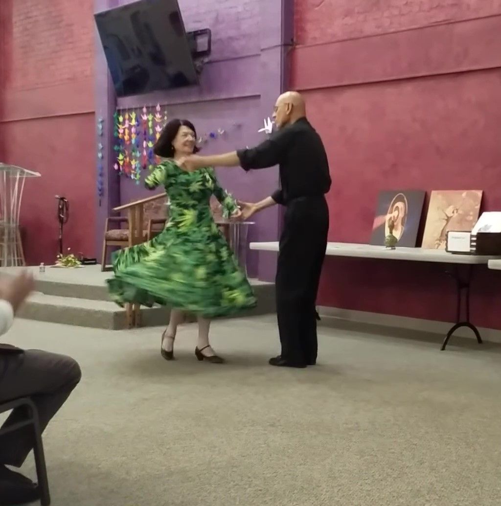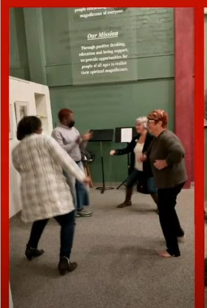 Buddy Jones has been chosen to receive the Marjorie Brandon Award in recognition of his lifetime devotion to making this community a better place. Pictured Buddy plays drum with Tino, Buddy with Rosalinda Verde (last year's winner of the MB Award), and Deanna Saldana with Bruce Huddleston (piano) and Joe Lizama (drums) at the presentation event on November 5, 2022, here at the Center for Spiritual Living Visalia.